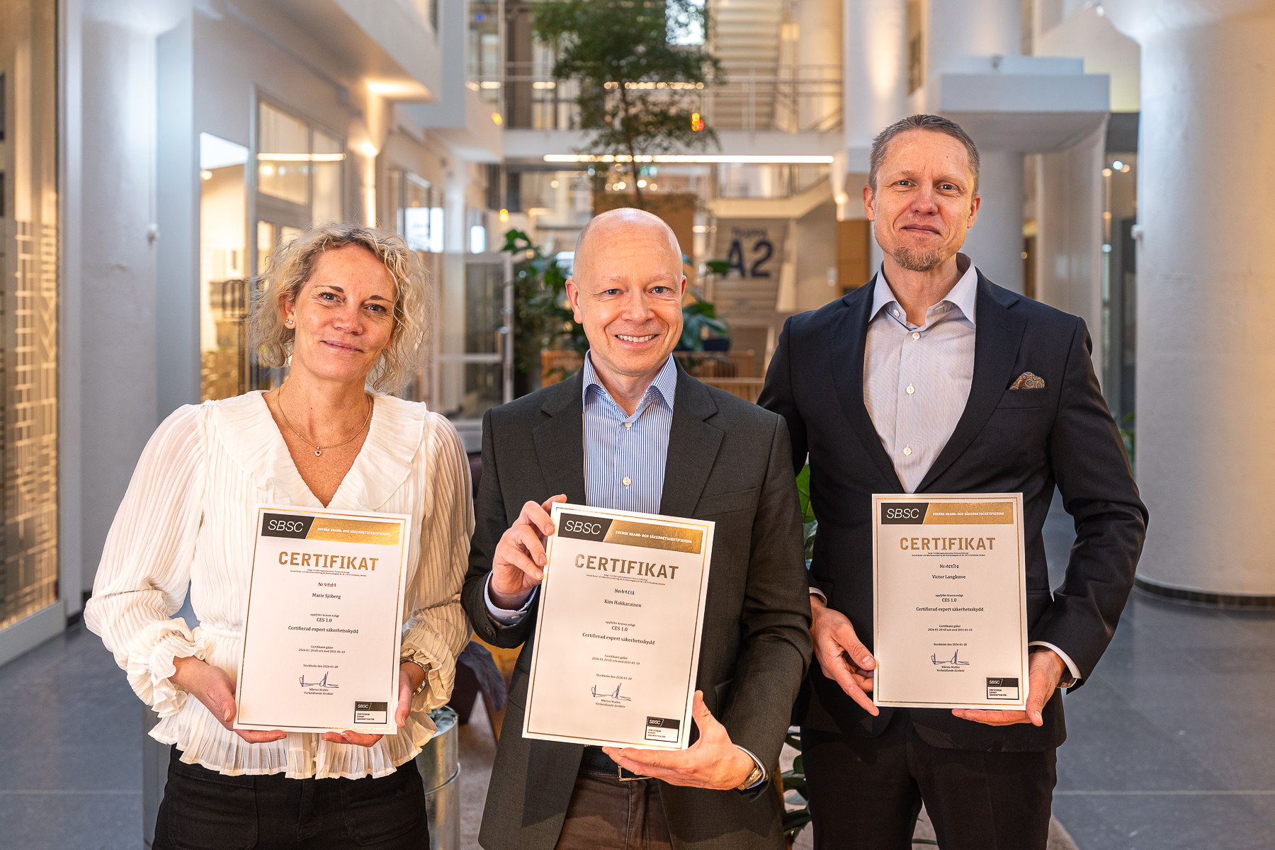 I samband med lanseringen har SBSC nu certifierat de första personerna som Certifierad Expert Säkerhetsskydd: Kim Hakkarainen (Týr Cyber Defense) samt Marie Sjöberg och Victor Langåssve (Knowit).